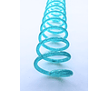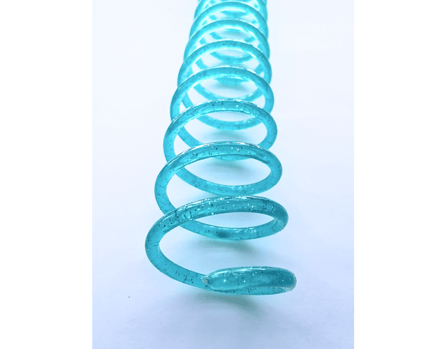 Espiral plástico de excelente calidad y bellos colores. Paso 2:1 para utilizar con anilladora cinch, wiremac u otras similares. Medida para aproximadamente 130 hjs de 105 grs más tapas.